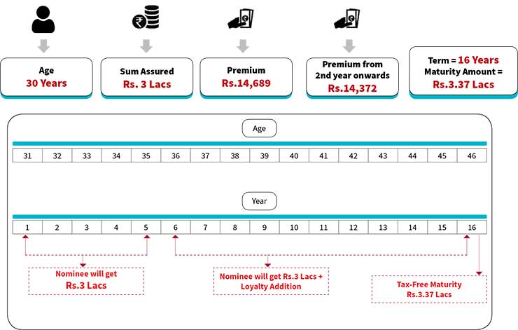 • The customer gets the tax-free maturity which includes the loyalty bonus along with Sum Assured