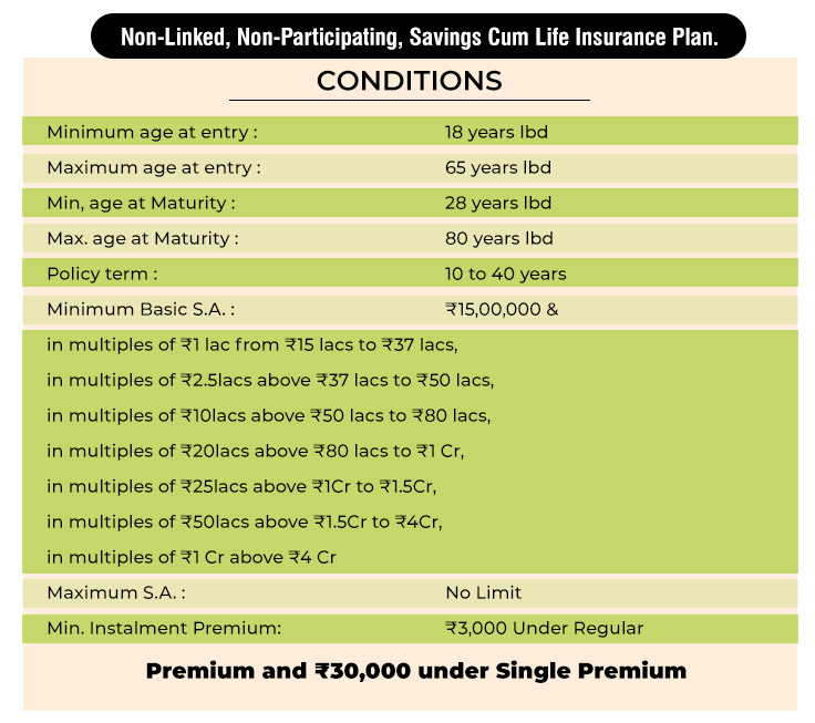 • This plan can be Taken on Single life and Joint Life (Only Spouse as Joint Life and both should be 40 years and above).
