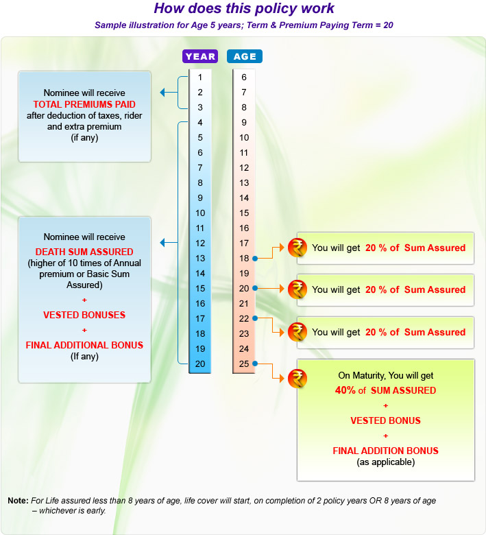 Maturity benefit: 40% of SA+ Bonus + Final Additional Bonus
